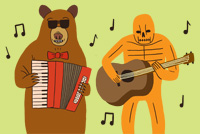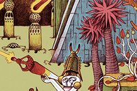 Pages from Matt Furie's stunning wordless picture book The Night Riders (2012, McMullens)